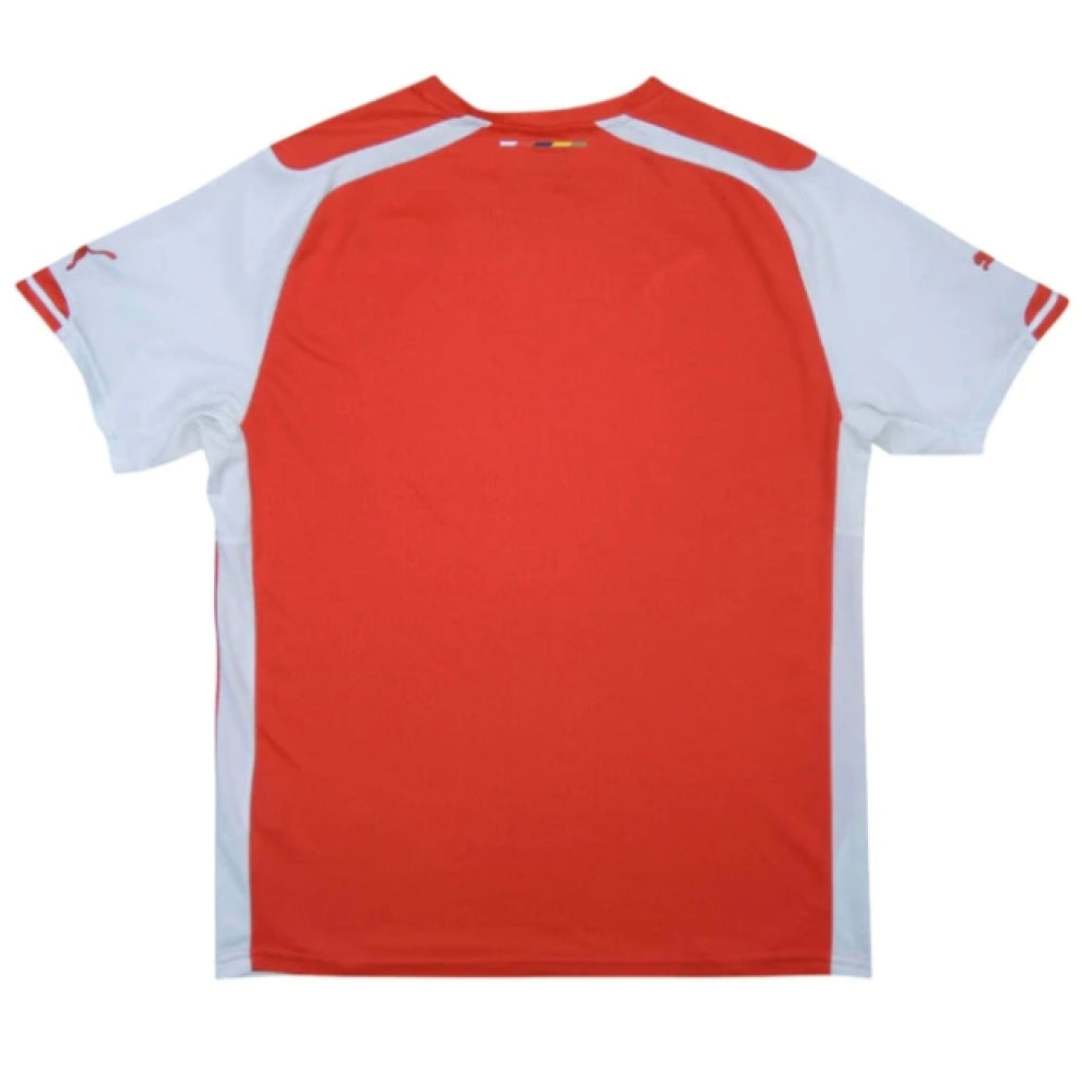 The Arsenal 2014-15 Home Shirt was worn by players such as Mertesacker, Rosicky, Arteta, Ozil and Walcott as the team finished 3rd in the English Premier League, the won the FA Cup and the FA Community Shield.
