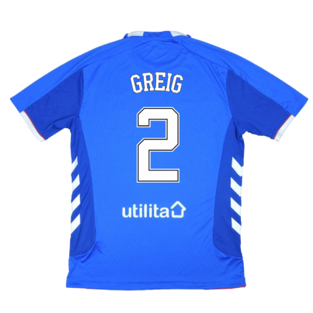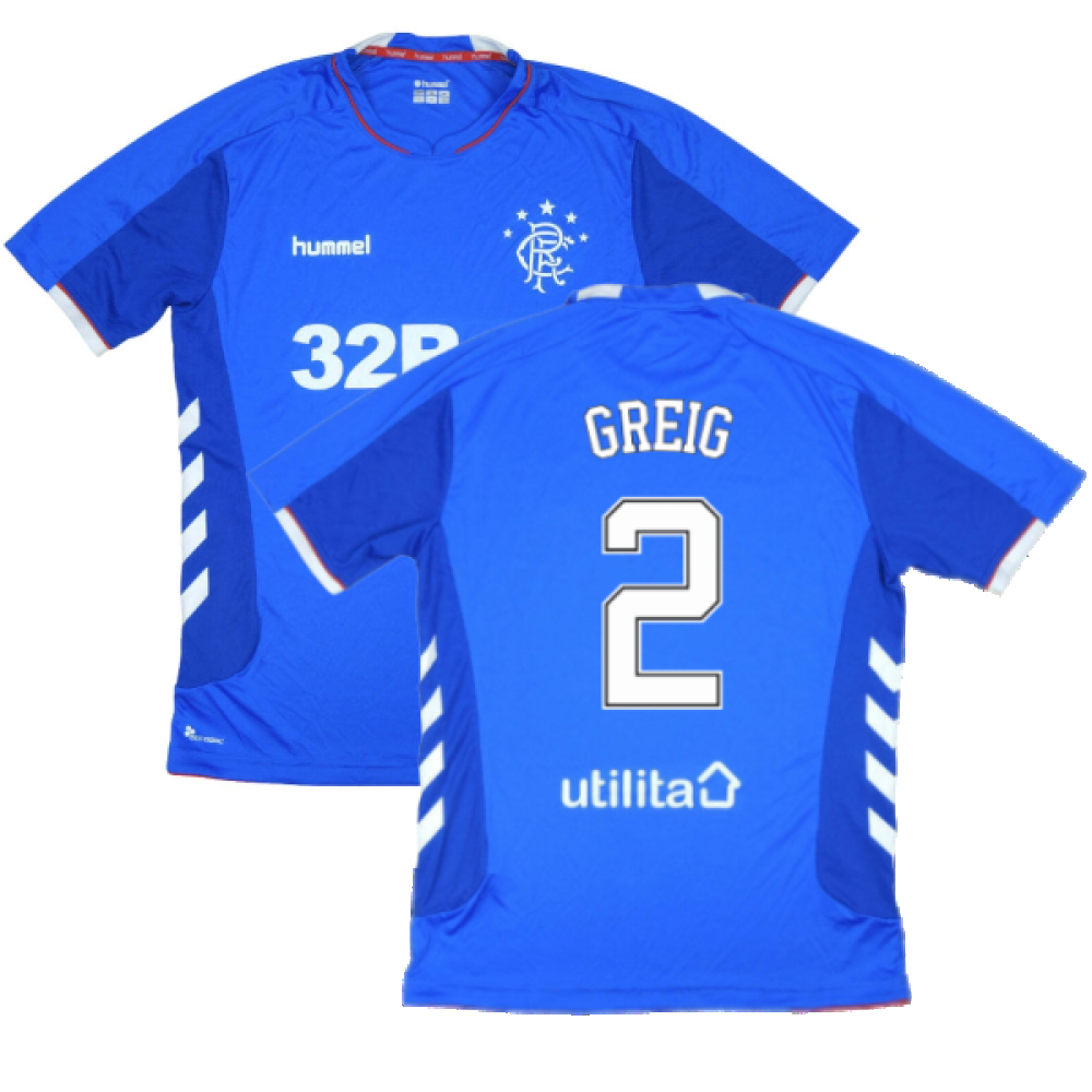 Official John Greig football shirt. This is the Rangers Football Shirt for season 2018/2019 which is manufactured by Hummel and is available in all adult sizes.